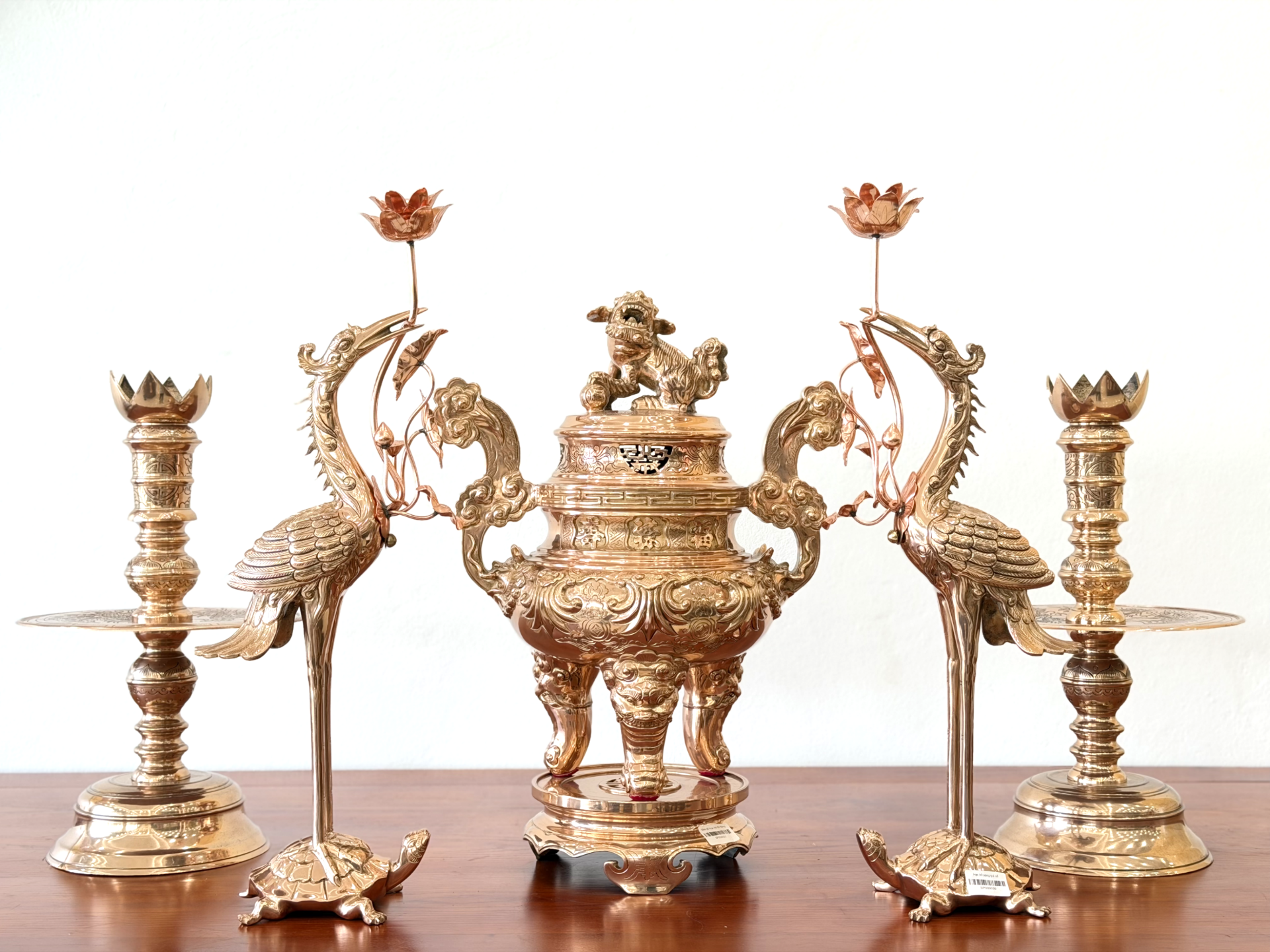 Bộ ngũ sự phù hợp trưng bày trên bàn thờ kích thước từ 1m97, thích hợp cho phòng thờ gia đình, từ đường, đền chùa hoặc nhà thờ họ.
